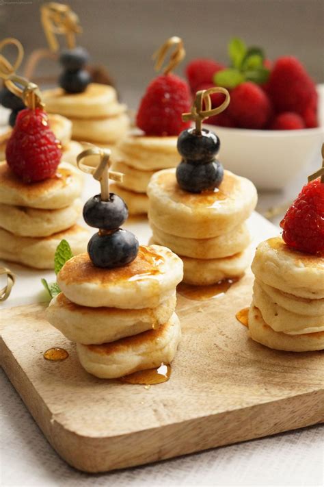 Fluffy mini pancake stacks with berries & maple syrup Mini pancakes from www.pinterest.com
